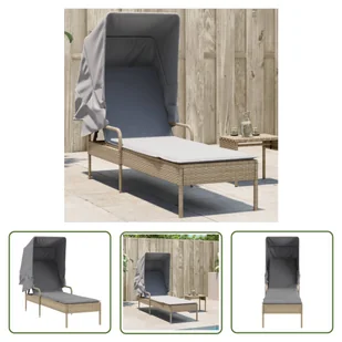 Leżak z daszkiem Beżowy polirattanZrelaksuj się i ciesz się przestrzenią na zewnątrz na tym wygodnym leżaku! Wytrzymały materiał: rattan PE, znany również jako polirattan, to wytrzymały, łatwy w pielęgnacji materiał syntetyczny o wyglądzie naturalnego rattanu. Charakteryzuje się niską wagą i jest łatwy w czyszczeniu. Ze względu na swoją trwałość i odporność na warunki atmosferyczne jest często wykorzystywany do produkcji mebli ogrodowych. Regulowane oparcie: