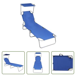 Składany leżak z daszkiem przeciwsłonecznym niebieski aluminiumTen leżak z daszkiem przeciwsłonecznym oferuje wygodne miejsce do spania, opalania się lub czytania. Jest idealny do użytku na zewnątrz, w ogrodzie, na dziedzińcu, w parku, przy basenie lub na plaży. Ten wysokiej jakości leżak jest wyposażony w regulowany baldachim, który zapobiega oślepianiu podczas opalania. Oparcie można regulować, aby cieszyć się wygodną pozycją leżącą. Rama wykonana jest z malowanego proszkowo aluminium, które jest odporne na warunki atmosferyczne, a jej maksymalne obciążenie wynosi 120 kg.