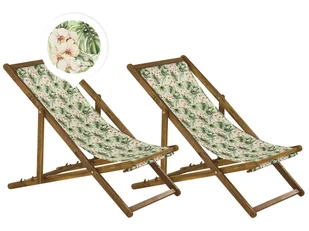 2 krzesła ogrodowe wykonane z jasnego drewna akacjowego z wymiennymi pokrowcami z tkaniny. Praktyczne krzesła plażowe mają oparcie regulowane w 3 kierunkach, są składane i łatwe w transporcie. Rama wykonana z jasnego, olejowanego drewna akacjowego jest wyjątkowo trwała i zapewni wiele lat przyjemności z użytkowania. Zestaw składa się z 2 leżaków ze standardową tapicerką w kolorze kremowej bieli i 2 dodatkowych, kolorowych tkanin alternatywnych z kwiatowym wzorem. Aby odświeżyć wygląd standardowej wersji, wystarczy zdjąć poprzeczki z ramy leżaka i wymienić tkaninę.