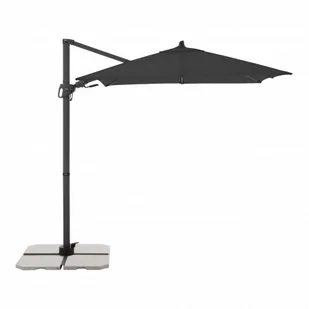 Parasol ma stabilną aluminiową konstrukcję, jest wyposażony w mechanizm korbowy i jest łatwy w obsłudze. Poszycie parasola wykonane jest z tkaniny poliestrowej, jest wodoodporne i ma dobrą ochronę przed promieniowaniem UV SPF 50+. Parasol można obracać o 360°, przechylać w siedmiu pozycjach i obracać osiowo w dowolną stronę.
