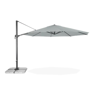 Ze względu na swój rozmiar parasol jest najlepszym rozwiązaniem dla osób dysponujących dużymi przestrzeniami. Choć niezwykły design jest niezaprzeczalnym atutem tego modelu, to godne uwagi są także najwyższej jakości materiały wykorzystane do jego wyprodukowania. Czasza o średnicy 400 cm jest wykonana z wytrzymałego poliestru o gramaturze 200 g/m2, a wspiera się na 8 aluminiowych szprychach, które zapobiegają odginaniu się powierzchni parasola nawet podczas wietrznej pogody. Stelaż również jest wykonany z aluminium, które charakteryzuje się wysoką wytrzymałością na oddziaływanie warunków atmosferycznych. Należy pamiętać, aby do tego parasola z mocowaniem bocznym zamówić płyty do podstawy o łącznej wadze 200 kilogramów.