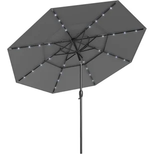 ——Parasol z oświetleniem: Ten parasol ogrodowy jest wyposażony w 32 jasne diody LED, które oświetlają przestrzeń zewnętrzną w nocy, tworząc fascynującą atmosferę na tarasie, w ogrodzie lub na plaży, idealną na wieczorne spotkania z przyjaciółmi lub rodziną. Dzięki wbudowanemu panelowi słonecznemu jest bardzo energooszczędny i praktyczny.