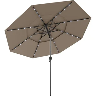——Parasol z oświetleniem: Ten parasol ogrodowy jest wyposażony w 32 jasne diody LED, które oświetlają przestrzeń zewnętrzną w nocy, tworząc fascynującą atmosferę na tarasie, w ogrodzie lub na plaży, idealną na wieczorne spotkania z przyjaciółmi lub rodziną. Dzięki wbudowanemu panelowi słonecznemu jest bardzo energooszczędny i praktyczny.