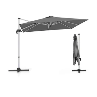 ——Obrót o 360° i regulacja nachylenia: Dzięki funkcji obrotu o 360° ten parasol z wysięgnikiem zapewni optymalną ochronę przed słońcem przez cały czas. Ponadto dzięki 5 regulowanym kątom nachylenia, które można zmieniać za pomocą korby, można dostosować cień do własnych potrzeb.