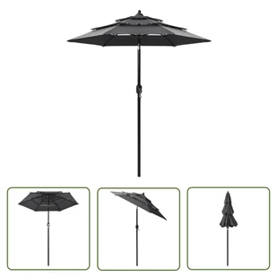 The Living Store 3-poziomowy parasol na aluminiowym słupku - antracytowy - 2 m - Parasol Ogrodowy