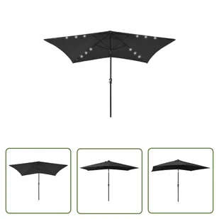 The Living Store Parasol ogrodowy z LED i stalowym słupkiem - czarny - 2x3 m - Parasol Ogrodowy