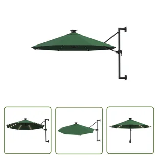 The Living Store Parasol ogrodowy z LED - ścienny - 300 cm - zielony - Parasol Ogrodowy
