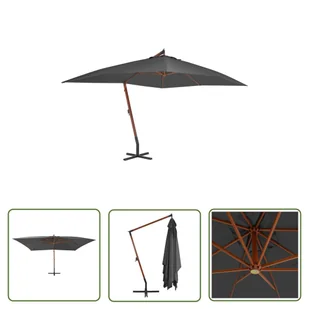 The Living Store Wiszący parasol z drewnianym słupkiem - 400x300 cm - antracytowy - Parasol Wiszący