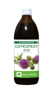 SOK Z OSTROPESTU 500 ml BEZ KONSERWANTÓW Ostropest plamisty jest rośliną znaną z właściwości wspomagających pracę wątroby. Zawarta w nim sylimaryna korzystnie wpływa na oczyszczanie i regenerację komórek wątroby. Składniki: sok z nasion ostropestu plamistego (Sylybum marianum L.), kwas L-askorbinowy - źródło witaminy C. Zalecana porcja do spożycia: 25 ml dwa razy dziennie, pół godziny przed posiłkiem.