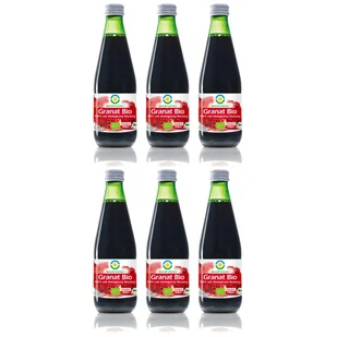 Bio Food Sok z granatu zestaw 6 x 300 ml Bio. żywność. Sok z granatu zestaw 6 x 300 mlSok tłoczony, nie z koncentratu Produkt pasteryzowany Smak i konsystencja mogą nieznacznie różnić sie w zależności od pory roku Występujący osad tworzą naturalne składniki granatu