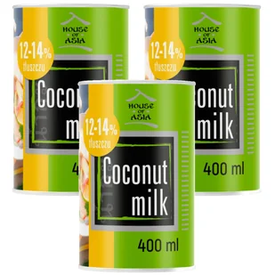 House of Asia Mleczko kokosowe 12-14% Zestaw 3 x 400 ml. Żywność. Mleczko kokosowe 12-14% Zestaw 3 x 400 mlMleko kokosowe jest lekko słodkie, intensywnie pachnące kokosem, charakteryzuje się delikatną konsystencją Nadaje daniom oryginalną i egzotyczną nutę oraz stanowi doskonałe uzupełnienie kuchni