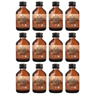 Shot Antioxid booster zestaw 12 x 100 mlShot ANTIOXID BOOSTER to niegazowany napój bez dodatku cukru, którego bazą są soki NFC wzbogacone sokiem z kłącza kurkumy i czarnym pieprzem.