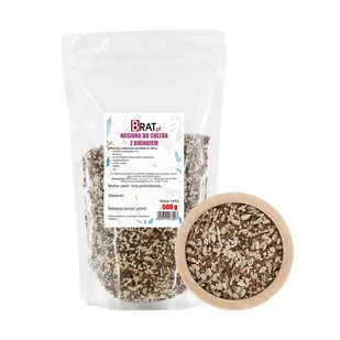 Nasiona do chleba z kminkiem 500g PRODUKT NATURALNY, WYSOKIEJ JAKOŚCI Produkt pakowany jest w opakowanie typu "doypack" ze struną co pozwala na zachowanie długiej świeżości, gdyż można takie opakowanie wielokrotnie otwierać i zamykać a samo opakowanie jest trwałe co jest istotne podczas transportu. Zrównoważona mieszanka ziaren: słonecznika, siemienia lnianego, sezamu i kminku, która wspaniale nadaje się do dekoracji oraz zwiększenia wartości odżywczych domowego chleba, bułeczek czy innych słonych wypieków. Dodając je do przygotowanych potraw nie tylko wzbogacisz ich skład, ale również walory smakowe. Gotowa mieszanka znacznie usprawni proces przyrządzania.