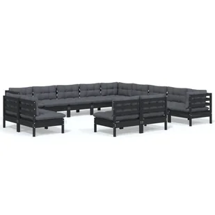 13-cz. zestaw wypoczynkowy do ogrodu, poduszki, czarny, sosna