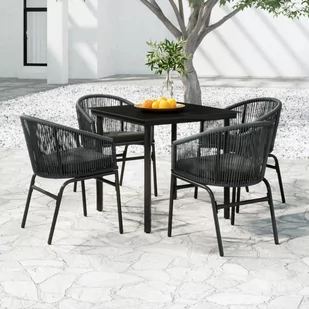 Ten ogrodowy zestaw mebli ma ramy ze stali malowanej proszkowo, dzięki czemu jest solidny i stabilny do codziennego użytku na zewnątrz. Gładki, szklany blat jest łatwy do czyszczenia wilgotną ściereczką i doskonale nadaje się do postawienia na nim posiłków, napojów i przedmiotów dekoracyjnych. Krzesła ogrodowe wykonano z rattanu PVC, dzięki czemu są trwałe i odporne na niekorzystne warunki pogodowe i promienie UV. Poza tym każde krzesło zawiera zdejmowaną, grubo wypełnioną poduszkę, zapewniając większy komfort w czasie wypoczynku.