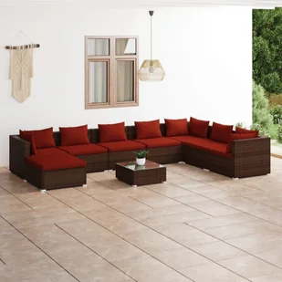 9-cz. zestaw wypoczynkowy do ogrodu, poduszki, rattan PE, brąz