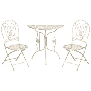 Zestaw mebli ogrodowych z kwiatowym motywem. Dodaj uroku do swojego ogrodu lub balkonu dzięki temu eleganckiemu zestawowi balkonowemu, charakteryzującemu się delikatnym wzorem i wykończeniem w stylu vintage przy użyciu procesu e-coatingu, podczas którego warstwa farby jest nanoszona na metalową powierzchnię za pomocą elektroforezy. Wykonany z trwałego żelaza będzie służył przez wiele lat. Stół oraz dwa składane krzesła są praktycznie w użytkowaniu i pomogą ci stworzyć przytulne miejsce do relaksu. Szczegóły: Typ produktu: