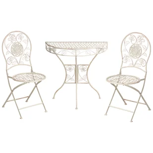 Zestaw mebli ogrodowych z kwiatowym motywem. Ten urokliwy zestaw balkonowy z półokrągłym stolikiem i dwoma krzesłami to doskonałe rozwiązanie na balkon, czy niewielki taras. Funkcja składania sprawia, że krzesła zajmują niewiele miejsca, a metalowa rama została poddana procesowi e-coatingu, w którym ładunek elektryczny przyciąga ochronną farbę do metalu, zapewniając trwałość i odporność na rdzę. Delikatny, kwiatowy wzór i wykończenie w stylu vintage podkreślają jego unikalny wygląd. Szczegóły: Typ produktu: