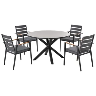 Nowoczesny komplet jadalniany do ogrodu. Wybierz ten elegancki zestaw ogrodowy składający się z krzeseł i stołu i rozkoszuj się posiłkiem na świeżym powietrzu. Wykonany z wysokiej jakości materiałów, jest idealny do użytku zewnętrznego i nie wymaga częstej konserwacji. Stół z solidnymi aluminiowymi nogami i blatem ze szkła ceramicznego jest odporny na warunki atmosferyczne i wytrzyma długotrwałe użytkowanie. Nowoczesne krzesła z miękkimi poduszkami idealnie współgrają ze stołem i pasują do każdej przestrzeni zewnętrznej, od ogrodu po patio i taras.