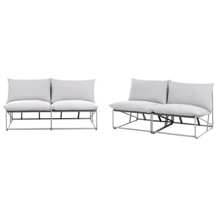 Niska sofa i fotele z poduchami oversize bez podłokietników. Ten nowoczesny zestaw wypoczynkowy, składający się z ponadwymiarowej sofy 2-osobowej i dopasowanych foteli, łączy elegancki design z maksymalnym komfortem. Minimalistyczne, metalowe ramy w połączeniu z głębokimi poduszkami tworzą nowoczesny, a jednocześnie przytulny charakter, który sprawdzi się zarówno we wnętrzach, jak i na zewnątrz. Dzięki wodoodpornej tapicerce zestaw jest trwały, łatwy w pielęgnacji i odporny na zmienne warunki pogodowe. Idealny na taras, balkon czy do ogrodu, stanowi spójną i elegancką przestrzeń do stylowego relaksu.