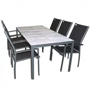 Konstrukcja stołu wykonana jest z aluminium, pokrytego powłoką proszkową w kolorze antracytowym, która chroni stół przed korozją i znacznie wydłuża jego żywotność. Kolejną wielką zaletą stołu jest jego trwały ceramiczny blat w pięknym wyżarzanym szarym kolorze.