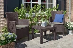 Zestaw mebli ogrodowych, Keter, Rosario Klasyczny i funkcjonalny zestaw balkonowy Rosario Balcony Set to świetna propozycja dla niewielkich przestrzeni w ogrodzie, na tarasie lub balkonie. Zestaw składa się z dwóch klasycznych w swej formie i bardzo wygodnych foteli z profilowanym oparciem, podłokietnikami i miękkimi poduchami na siedzisku oraz podręcznego stolika kawowego o prostej i solidnej konstrukcji. Uwagę zwraca modny rattanowy splot oraz minimalistyczna formą. Produkt został wykonany z najwyższej jakości tworzywa, całkowicie odpornego na uszkodzenia oraz szkodliwe czynniki atmosferyczne. Nie wymaga specjalnych środków czyszczących - wystarczy miękka ściereczka z dodatkiem wody i detergentu.