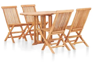 długość – 70 cm, szerokość – 14 cm, wysokość – 75 cm - Wymiary krzesła (po rozłożeniu): szerokość – 46 cm, głębokość – 62 cm, wysokość – 89 cm - Wymiary krzesła (po złożeniu): szerokość – 46 cm, głębokość – 9 cm, wysokość – 109 cm - Materiał: odporne na wpływ czynników atmosferycznych, lite drewno tekowe z wykończeniem na bazie wody.