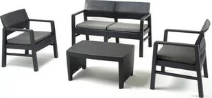 Czteroczęściowy zestaw mebli ogrodowych komfortowy dla 4 osób. V-GARDEN IPAE FUJI DeLuxe zawiera 2 krzesła, ławkę i stolik. Komplet jest wykonany z syntetycznego włókna polietylenowego, które imituje rattan, dzięki czemu wygląda stylowo i nie pleśnieje. Posiada również filtr UV dla trwałości mebli na słońcu.