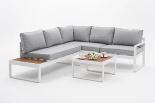 Meble Ogrodowe Narożnik Nowoczesny Aluminium Nicea Biały Lewy