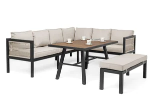EKSLUZYWNY ALUMINIOWY ZESTAW OGRODOWY PORTOFINO Portofino marki NEW HOME Garden jest narożnym zestawem jadalnym dla każdego patio, ogrodu lub przestrzeni tar...