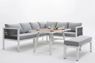 EKSLUZYWNY ALUMINIOWY ZESTAW OGRODOWY PORTOFINO Portofino marki NEW HOME Garden jest narożnym zestawem jadalnym dla każdego patio, ogrodu lub przestrzeni tar...