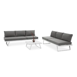 Narożnik modułowy aluminiowy MIDWAY White - FOCUS GARDENFocus Garden Narożnik modułowy Aluminiowy Midway White - Focus Garden Opis produktu: Narożnik modułowy Focus Garden Midway White to idealne rozwiązanie dla Twojego ogrodu. Składający się z kilku modułów, ten mebel ogrodowy pozwala na swobodną aranżację w zależności od Twoich indywidualnych potrzeb. Składa się z trzech modułów: dwóch sof narożnych oraz modułu środkowego, który może być wykorzystywany jako wygodny leżak/szezlong.