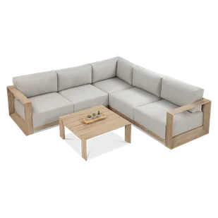 Odkryj wyjątkowy komfort i styl z zestawem narożnikowym Royal Caffe - Furrore. Ten wyrafinowany komplet mebli ogrodowych łączy w sobie najwyższą jakość wykonania z doskonałym designem, tworząc idealne miejsce do relaksu na świeżym powietrzu. Zestaw składa się z sofy narożnej, dwóch modułów oraz stylowego stolika kwadratowego. Każdy element zestawu wykonany jest z trwałego i estetycznego drewna akacjowego, które nie tylko zachwyca swoim naturalnym wyglądem, ale również zapewnia długowieczność mebli. Jasnoszare poduszki, uszyte z wysokiej jakości poliestru o gramaturze 260g, dodają całości nowoczesnego charakteru.