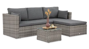 Jeżeli szukasz mebli ogrodowych do całorocznego użytku i zróżnicowanych zastosowań, ten komplet trafi w Twoje gusta. Cechy: narożnik przeznaczony jest do użytku zewnętrznego i wewnętrznego w skład kompletu wchodzą 2 moduły główne z poduchami oraz praktyczny stolik stelaż wykonany jest z wytrzymałej i solidnej stali, która zapewnia należytą sztywność konstrukcji konstrukcja pozwala dowolnie aranżować kształt narożnika (lewostronny, prawostronny) do wykończenia użyto plecionki technorattanowej w odcieniach szarości. o dodatkowy komfort zadbają wygodne poduszki z zamkiem błyskawicznym całość jest bardzo łatwa do utrzymania w czystości, do pielęgnacji wystarczy tylko wilgotna ściereczka narożnik charakteryzuje się wysoką jakością wykonania i doskonale sprawdza się w codziennym użytkowaniu komplet przeznaczony jest do łatwego, samodzielnego montażu wg załączonej instrukcji Wymiary: cały narożnik: długość - 140 cm, szerokość - 210 cm, wysokość - 62 cm 2-osobowa sofa: