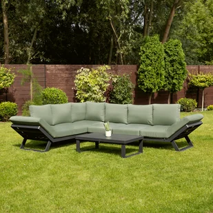 Konstrukcja sof oparta jest na trwałych aluminiowych ramach, co nadaje meblom efektowny wygląd i trwałość. Szałwiowy kolor dodaje odrobiny wyrafinowania, dzięki czemu mebel idealnie pasuje do każdego nowoczesnego lub współczesnego otoczenia. Poduszki siedziska i oparcia wyposażone są w zdejmowane pokrowce z wysokiej jakości olefiny, które nie tylko są łatwe w czyszczeniu, ale również zapewniają miękkość i wygodę podczas odpoczynku. Doskonałą sprężystość poduszek zapewnia mieszanka pianki i włókna. W zestawie znajduje się również stylowy stolik kawowy o wymiarach 110 x 65 x (wys.) 33 cm z solidnym blatem o grubości 5 cm.