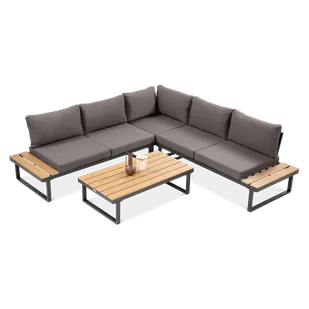 Opis: Szukasz wygodnych mebli ogrodowych, które będą pięknie się prezentować w nowoczesnej aranżacji? Narożnik stalowy EMERSON Dark Grey to strzał w dziesiątkę! Ten designerski zestaw zachwyca solidnością wykonania i pozwoli Ci na stworzenie modnej strefy wypoczynkowej. Minimalistyczna konstrukcja została wykonana z solidnej stali, która gwarantuje należytą wytrzymałość i stabilność. Zestaw składa się z 4 elementów: sofy narożnej, dwóch 2-osobowych sof oraz zgrabnego stolika kawowego. Do wykończenia blatu stolika i boczków sof wykorzystano deskę kompozytową „polywood”, która stanowi estetyczny wyróżnik.