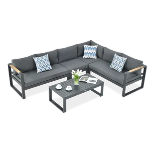 Meble ogrodowe z zestawu Panama Anthracite wykonane są z malowanego proszkowo aluminium, co zapewnia im wysoką trwałość i stylowy wygląd. Również pod względem designu całość prezentuje niezwykle nowoczesną klasę. Osoby o wymagającym guście estetycznym z pewnością zwrócą uwagę na podłokietniki narożnika wypoczynkowego Panama, na których znajduje się drewno tekowe. Pod względem walorów użytkowych zestaw wypoczynkowy z narożnikiem ogrodowym Panama Anthracite ma równie dużo do zaoferowania. Solidna, aluminiowa konstrukcja jest praktycznie bezobsługowa, meble są bardzo łatwe do umycia.