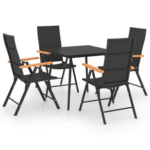 Krzesło ogrodowe wykonano z rattanu PE, dzięki czemu jest odporne na czynniki pogodowe i trwałe. Brązowe podłokietniki z WPC podkreślają stylowy wygląd krzesła. Stół zawiera szklany blat o prostych liniach. Jest on łatwy w czyszczeniu i odpowiedni do użytku na zewnątrz. Metalowe ramy zapewniają stabilność i wytrzymałość tego zestawu. Za sprawą lekkiej konstrukcji meble można łatwo przestawiać.