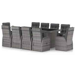 Zestaw mebli ogrodowych zawiera solidne, stalowe ramy malowane proszkowo, które są bardzo stabilne i trwałe. Dzięki rattanowi PE komplet ten jest łatwy w czyszczeniu, wytrzymały i nadaje się do codziennego użytku na zewnątrz. Blat wykonano z litego drewna akacjowego - tropikalnego, twardego drewna, które jest odporne na warunki atmosferyczne i trwałe. Krzesła z odchylanymi oparciami oferują najwyższy komfort siedzenia i świetne podparcie. Oparcie można łatwo regulować, zgodnie z własnym uznaniem, za pomocą przycisku z boku. Krzesła z podnóżkiem oferują dodatkowy komfort. Ponadto grube i miękkie poduszki na siedzisku i oparciu są bardzo wygodne. Ich łatwe w utrzymaniu poszewki z poliestru można bez problemu zdejmować i prać.