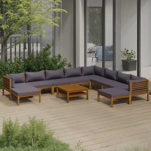 Zawierający ramy z litego drewna akacjowego zestaw mebli jest mocny, trwały i wytrzymały, a dzięki wykończeniu olejem także odpowiedni do użytkowania na zewnątrz. Zdejmowane poduszki są grubo wypełnione i zapewniają komfort siedzenia. W zestawie znajduje się także stolik kawowy o unikatowej konstrukcji z listew. Co więcej wyróżniający się modułową formą komplet można ustawić w dowolnej konfiguracji.