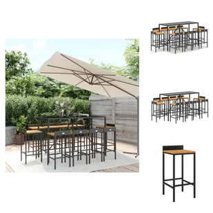 vidaXL 11-częściowy ogrodowy zestaw barowy z czarnego polirattanu i litego drewna akacjowego - Zestawy mebli ogrodowych