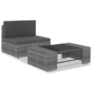- Materiał: rattan PE, tkanina (100% poliester), malowana proszkowo stal, szkło hartowane
