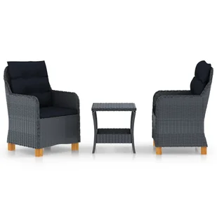 Krzesła i stolik do ogrodu, zawierające stalową ramę malowaną proszkowo i pokrytą rattanem PE, są wytrzymałe i łatwe do czyszczenia. Grubo wyściełane poduszki oferują większy komfort podczas wypoczynku. Poszewkę na poduszkę wyposażono w zamek błyskawiczny, można ją więc zdejmować i prać. Dodatkowo nogi z litego drewna akacjowego nadają fotelom wytrzymałość i stabilność. Solidny blat sprawdzi się idealnie do umieszczenia różnych przedmiotów. Ten zestaw wypoczynkowy można łatwo przestawiać za sprawą lekkiej konstrukcji.