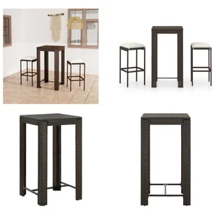 3-częściowy ogrodowy zestaw barowy z poduszkami z polirattanu brązowyPrzy tym stylowym ogrodowym zestawie barowym można spędzić relaksujący i przyjemny czas z rodziną i przyjaciółmi. Stół barowy jest wsparty na malowanej proszkowo stalowej ramie, dzięki czemu jest stabilny i wytrzymały. Kwadratowy blat zapewnia idealne miejsce na napoje, przekąski lub kilka przedmiotów dekoracyjnych. Stołki mają solidną stalową ramę i są wykonane z odpornego na warunki pogodowe rattanu PE, który zapewnia wysoki poziom stabilności. Są również łatwe do przenoszenia.
