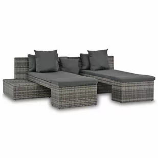 Ten zestaw z polirattanu składa się z 2 sof, 2 leżaków, 5 poduszek i 2 poduszek na siedziska, umożliwiając cieszenie się specjalnymi chwilami z przyjaciółmi i rodziną. Zestaw wypoczynkowy można ustawić na różne sposoby z ruchomymi leżakami.