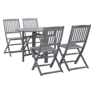 Zarówno stół, jak i krzesła wykonano z litego drewna akacjowego o szarym wykończeniu. Dlatego też są one odporne na czynniki atmosferyczne, trwałe i łatwe do czyszczenia za pomocą wilgotnej szmatki. Ze względu na solidną, drewnianą konstrukcję zestaw ten jest bardzo stabilny i bezpieczny. Zapewni Ci komfort i wygodę spędzania czasu z rodziną i przyjaciółmi. Ponadto stół i krzesła można złożyć do kompaktowego rozmiaru, gdy nie są używane, aby zaoszczędzić miejsce.