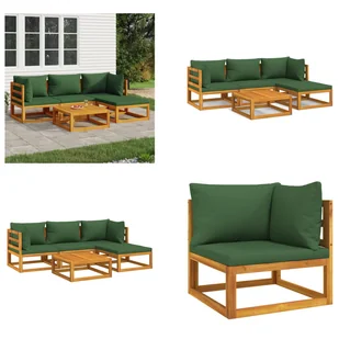 5-częściowy zestaw ogrodowy z zielonymi poduszkami z litego drewnaCiesz się filiżanką kawy lub herbaty na świeżym powietrzu, gdy pogoda jest ładna, dzięki temu eleganckiemu drewnianemu zestawowi ogrodowemu!Lite drewno akacjowe: Ten zestaw mebli ogrodowych jest wykonany z litego drewna akacjowego, pięknego naturalnego materiału. Jest to tropikalne drewno liściaste, które jest gęste, wytrzymałe i trwałe. Wygodne siedzenie: Oparcie sprawia, że sofa jest niezwykle wygodna do siedzenia.