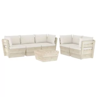Zestaw mebli ogrodowych wykonano z impregnowanego drewna świerkowego, dzięki czemu jest trwały i stabilny. Charakteryzuje się on solidną konstrukcją i małymi wymaganiami związanymi z konserwacją. Stół z mocnym blatem sprawdzi się idealnie, aby postawić jedzenie i napoje w zasięgu ręki. Dzięki grubemu wypełnieniu i poszewkom ze 100% poliestru poduszki na palety są miękkie i zapewniają wyjątkowy komfort. Co więcej modułowa konstrukcja mebli pozwala na ustawienie ich w dowolnej aranżacji, zgodnie z własnym gustem.
