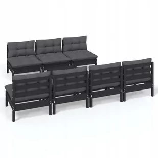 Zapewnij wystarczającą cyrkulację powietrza, aby uniknąć uszkodzeń spowodowanych wilgocią. Kolor: czarny Kolor poduszki: antracytowy Materiał: lite drewno sosnowe, tkanina (100% poliester) Wymiary sofy środkowej: 63,5 x 63,5 x 62,5 cm (szer. x gł. x wys.) Wymiary podnóżka/stolika: