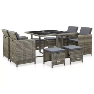 Ten zestaw mebli rattanowych o eleganckim designie posłuży znakomicie do zaserwowania posiłku na świeżym powietrzu lub relaksu w ogrodzie. Kryte proszkowo stalowe ramy sprawią, że stół, krzesła i stołki są stabilne, a dzięki lekkiej konstrukcji wszystkie elementy można łatwo przestawić. Zastosowanie odpornego na działanie wody i warunki pogodowe rattanu PE sprawia, że meble dają się łatwo czyścić. Szklany blat jest również łatwy w czyszczeniu wilgotną ściereczką.